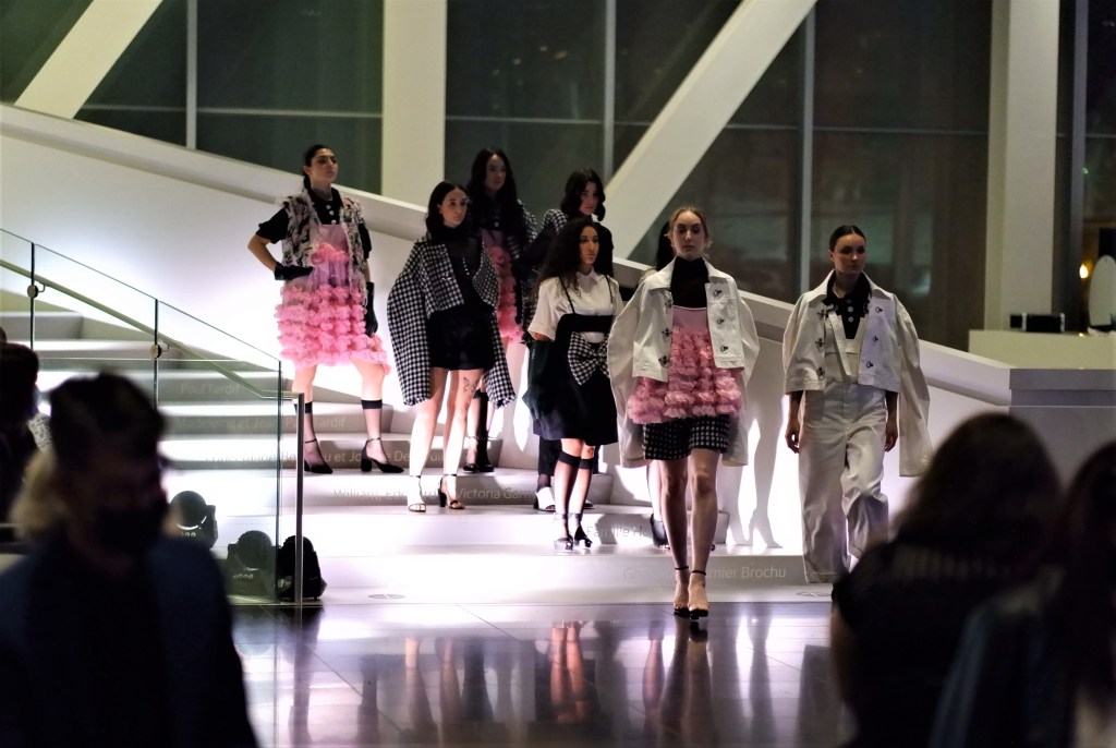Étudier en design de mode est le rêve de plusieurs. À Québec, une formation collégiale au privé est offerte au Campus Notre-Dame-de-Foy de Cap-Rouge. Il était difficile lors de cette soirée de passer sous silence le remarquable défilé des étudiants en design de mode de cette institution.