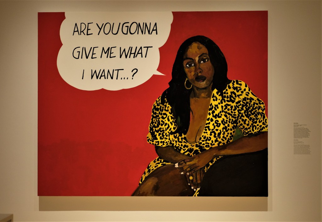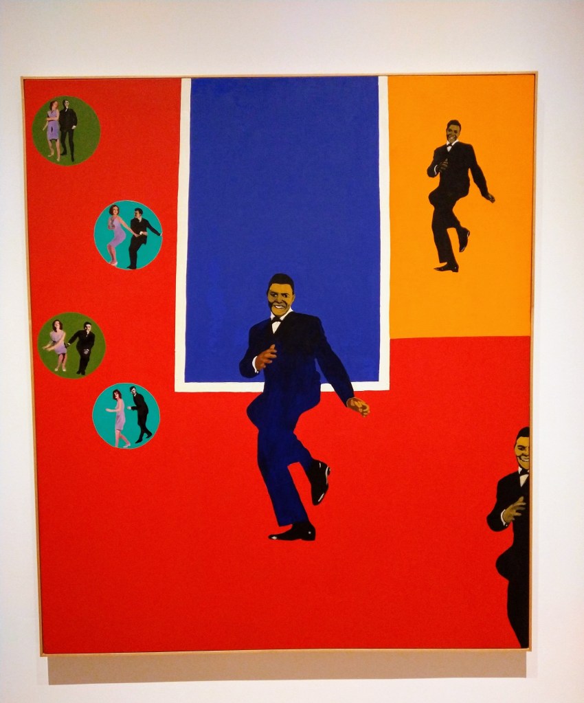 Dès l’arrivée dans la première salle dont le thème est Rêves et Réalités, l’oeuvre de Rosalyn Drexler intitulée Chubby Checker créée en 1964, attire rapidement l’attention. Cette artiste, dramaturge, romancière et lutteuse professionnelle, visualise le célèbre chanteur afro-américain dansant le twist. Cette mise en valeur du personnage, à l’époque où le mouvement de la défense des droits civiques s’amplifie émeut et surprend.