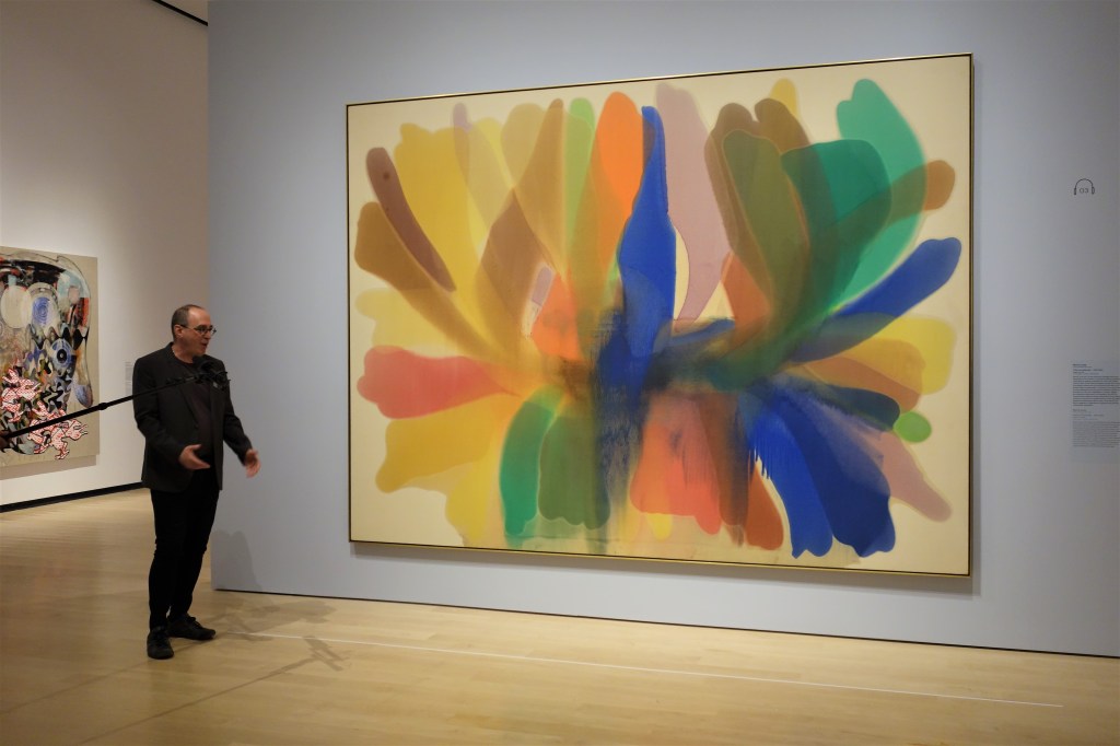 Le thème Paysages Imaginés nous fait découvrir la superbe oeuvre du peintre abstrait Morris Louis intitulée Point de quiétude. Celle-ci fait partie de la série Florals. Ici, l’artiste, par l’innovation technique et formelle de l’oeuvre, fait allusion de façon suggestive aux abstractions organiques des oeuvres des peintres modernistes américains de cette période.