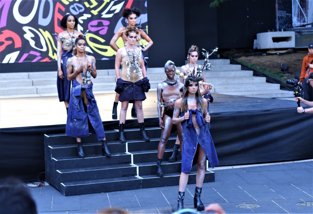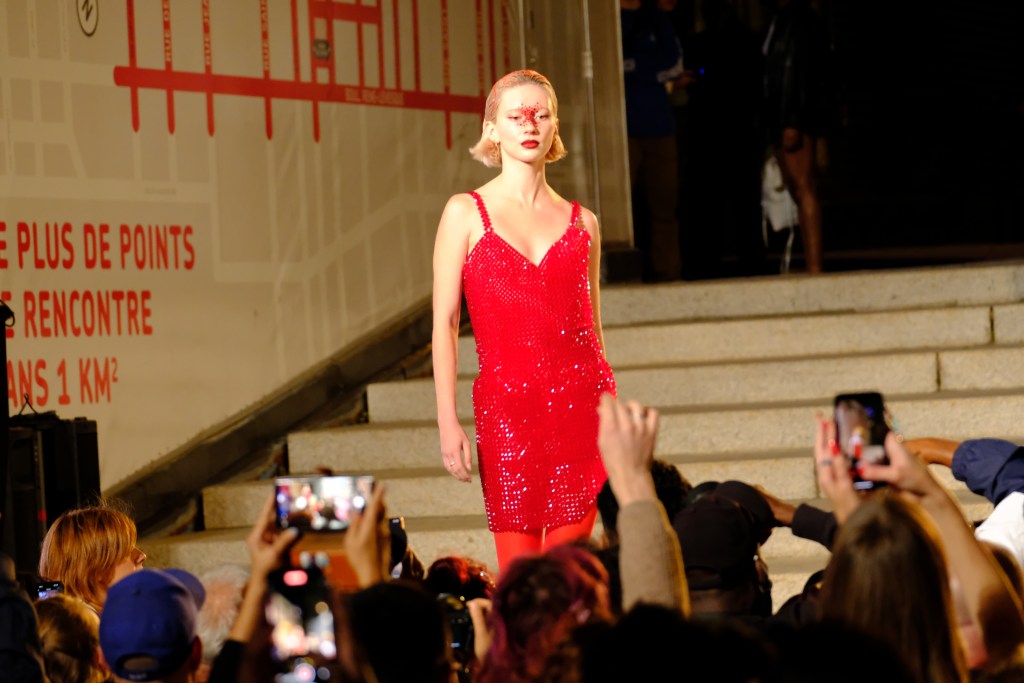 Lors de la performance présentée vendredi soir, la scénographie de la mise en scène du défilé dénonçait certaines problématiques issues de l’industrie de la mode. Celle-ci étant, après celle du pétrole, la plus polluante.