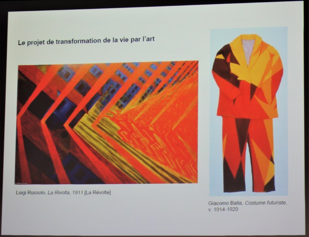 Avec la venue de la photographie, la peinture, qui est alors figurative, devient un art plus abstrait afin d’évoluer vers le cubisme. La mode évolue également en ce sens et Giacomo Balla propose notamment un costume futuriste aux couleurs vives et aux formes géométriques qui s’inspire du tableau de Luigi Russolo intitulé : La Rivolta.