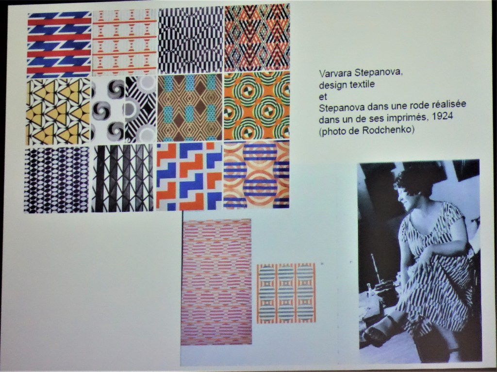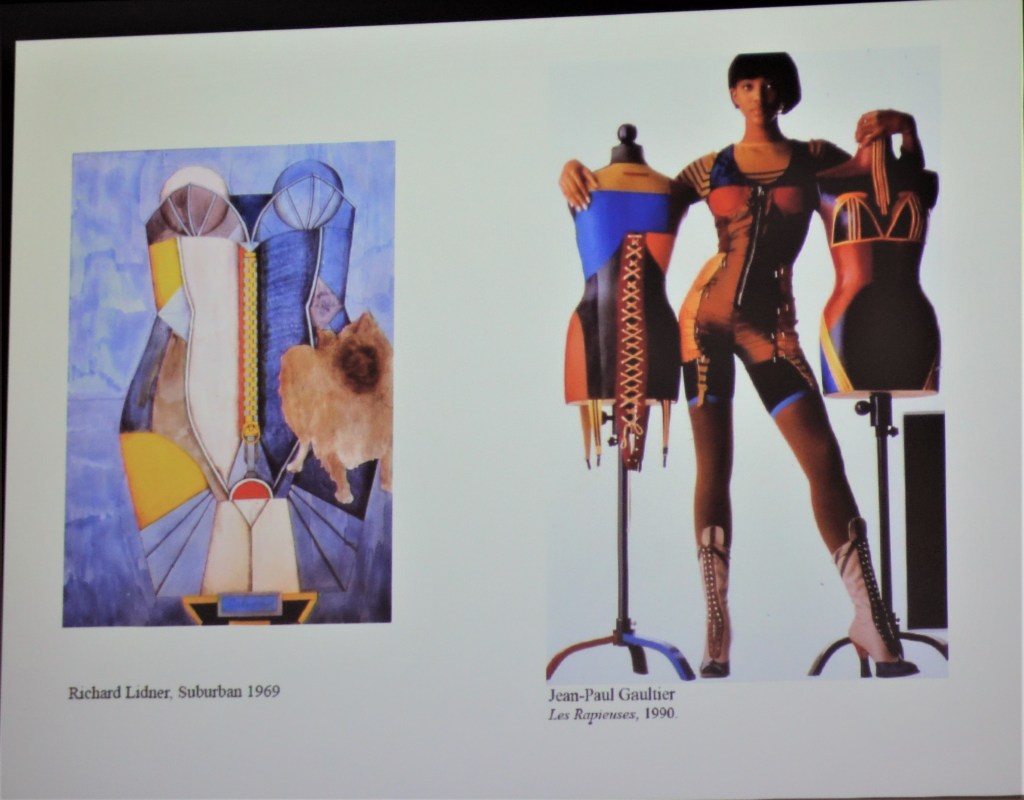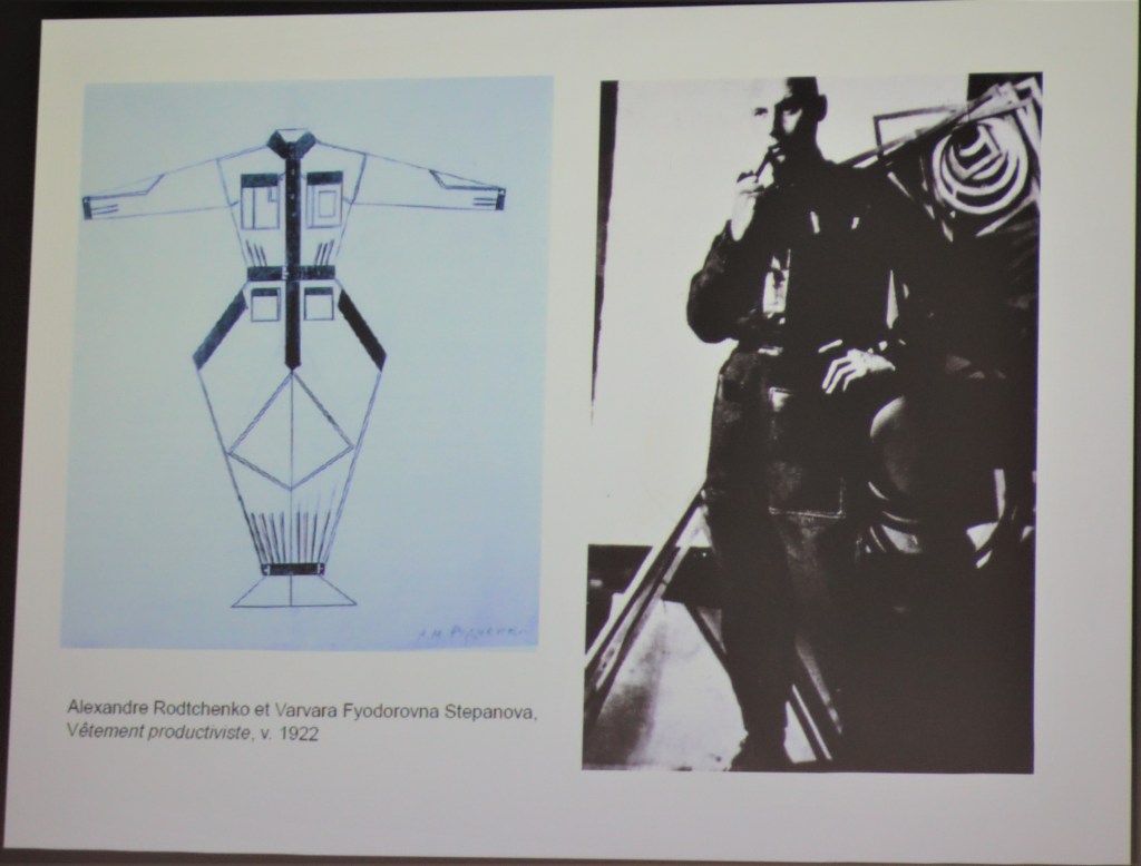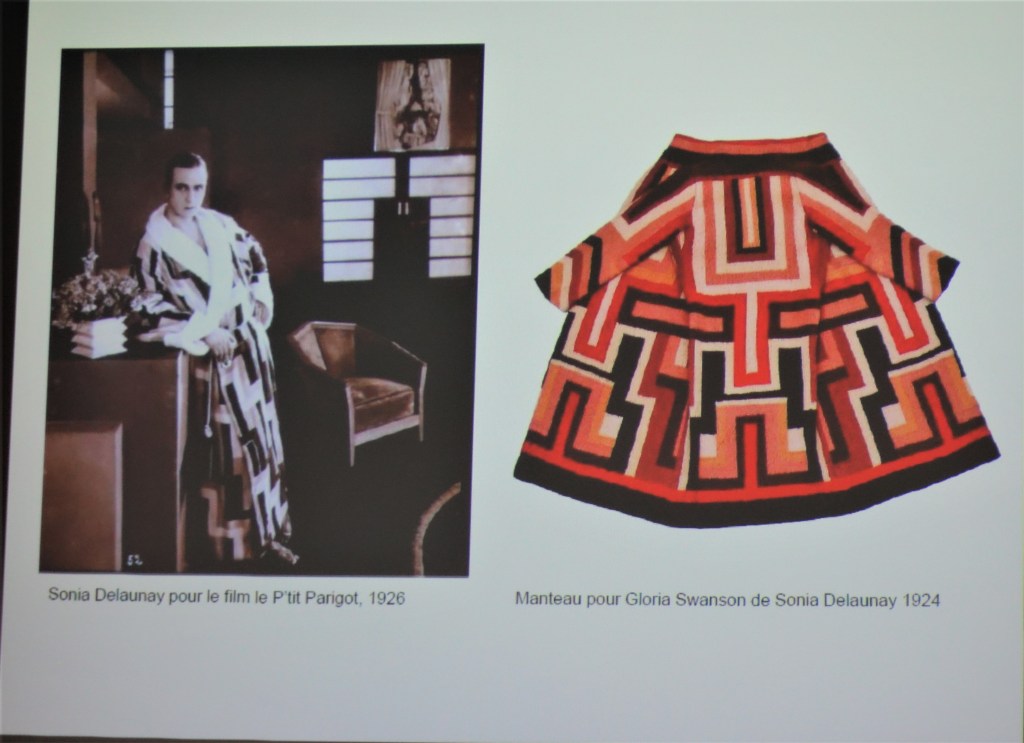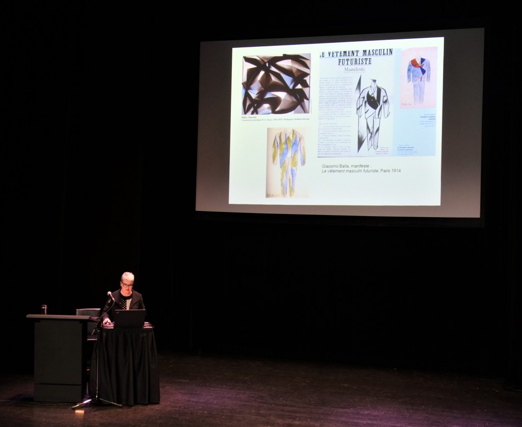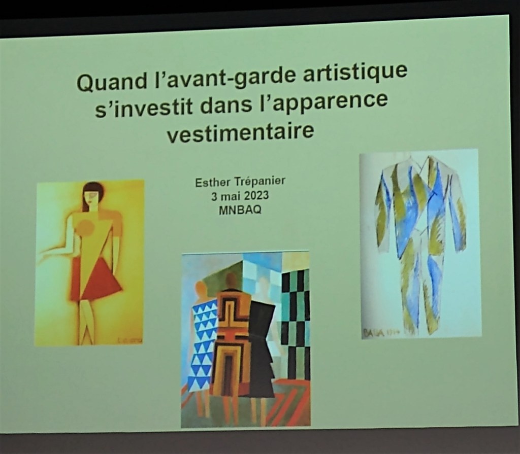 Lors de cette conférence, qui couvrait la période du début du siècle jusqu’à de nos jours, Esther Trépanier a abordé les thèmes suivants : le mouvement « réforme » en mode, quand la révolution artistique repense l’apparence vestimentaire, autour de la Révolution russe avec le constructivisme et le productivisme, une artiste qui possède sa propre maison de couture : Sonia Stern Delaunay, la collaboration entre les artistes et les maisons de couture, les couturiers qui s’inspirent de l’art pour créer et le vêtement comme médium pour la réalisation de l’œuvre d’art.