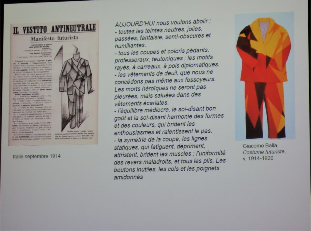 On prône alors l’égalité et le nivellement des classes sociales. Un manifeste italien voit le jour en septembre 1914 intitulé : Il vestito antineutrale afin de modifier les codes vestimentaires établis.