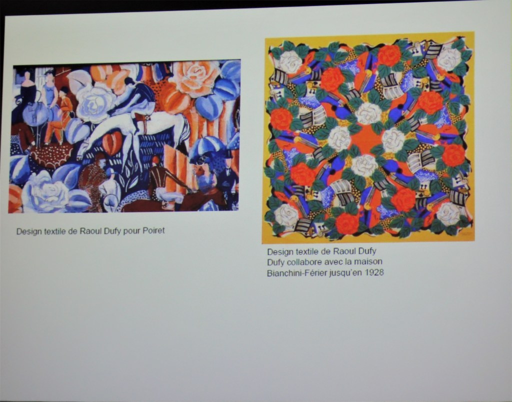 Raoul Dufy qui est notamment illustrateur réalise des imprimés textiles pour la maison de couture de Paul Poiret. Son art est délicat, le trait de crayon est fin et le motif de la rose domine souvent dans son travail.