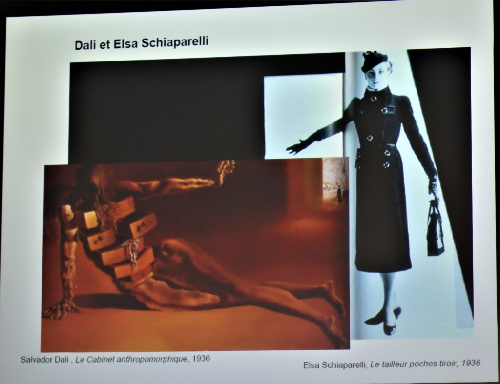 Le mouvement surréaliste en peinture procure parfois des modèles des plus surprenants lorsque les créateurs de mode s’en inspirent. Elsa Shiaparelli s’inspire à cette époque du tableau de Salvador Dalí intitulé : le cabinet anthropomorphique pour créer un tailleur à poches tiroirs. Or, sur ce tailleur, comment peut-on ouvrir les tiroirs qui s’y trouvent ?