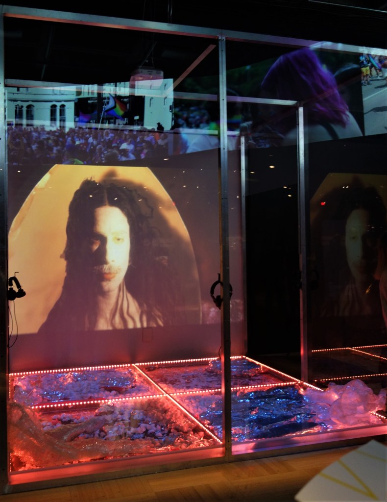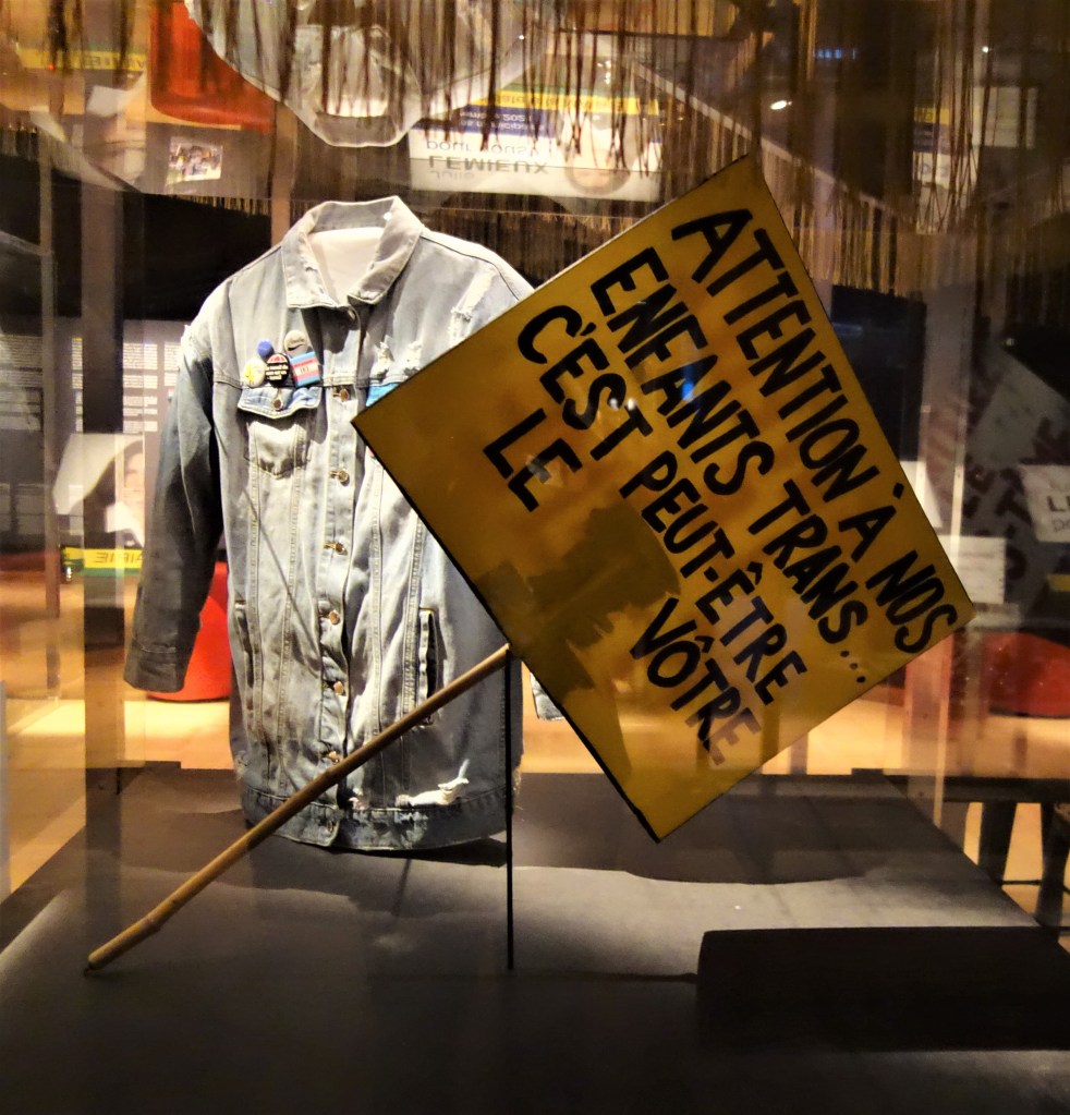 Être marginalisé signifie socialement être victime d’intimidations et de violence. De façon historique, cette section de l’exposition démontre comment les violences vécues ont mené à de grandes luttes sociales en vue de changements législatifs et sociaux importants pour les personnes de la communauté LGBT+ et en particulier les personnes trans. On n’a qu’à penser à la modification de l’acte de naissance ou bien le droit au mariage des personnes de même sexe.