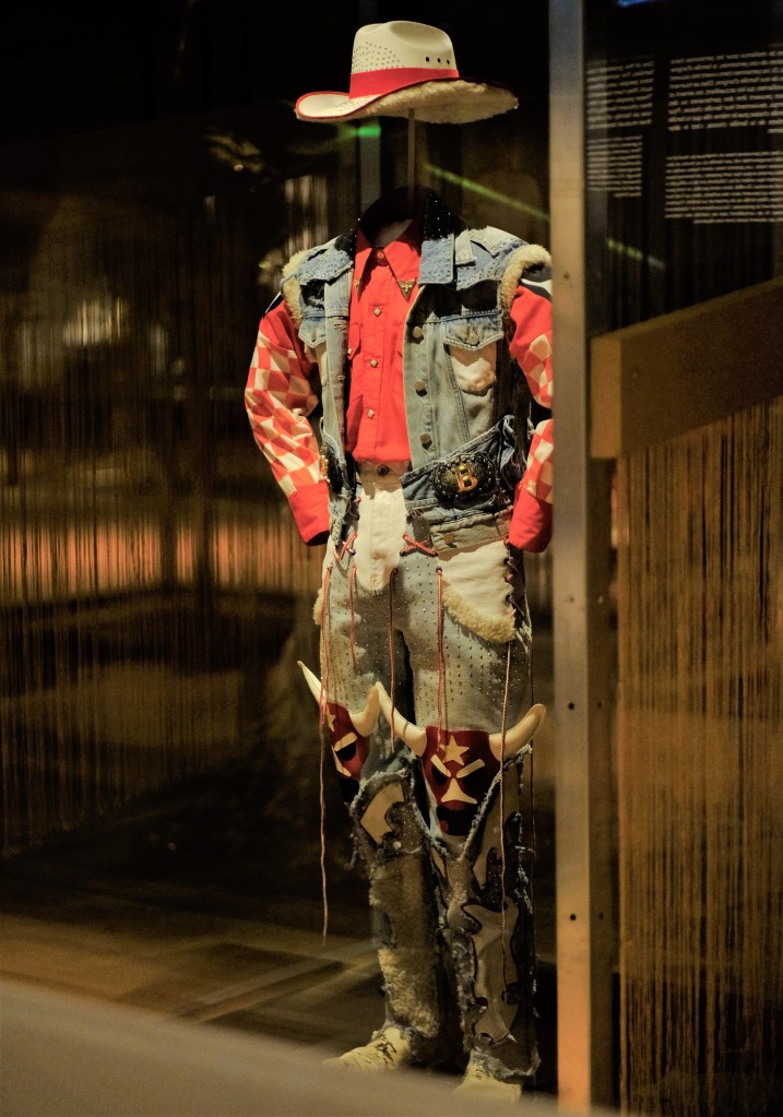 Le costume de scène de drag king Rock Brière a été porté en 2022 lors du spectacle MajestiX dans le cadre du festival Fierté Montréal sur l’Esplanade du Parc Olympique. Rock Brière interprète ce personnage en posant un regard caricatural concernant les stéréotypes masculins afin d’explorer la question de l’identité de genre.
