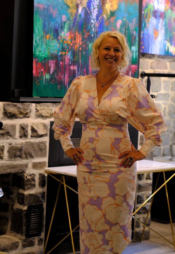 Elle est resplendissante de vie et de joie et elle lançait samedi 19 août dernier lors d’un sympathique Vernissage à la Galerie d’art Beauchamp de Québec sa toute nouvelle exposition intitulée : L’autre chemin vers mon jardin. Angela Morgan est fabuleuse !
