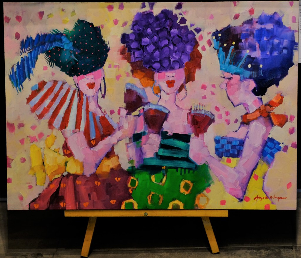 Cette magnifique œuvre est le coup de cœur perso de cette charmante exposition en raison du format de la toile, de l’immense chapeau porté par le personnage et bien sûr le mélange harmonieux des vibrantes couleurs.