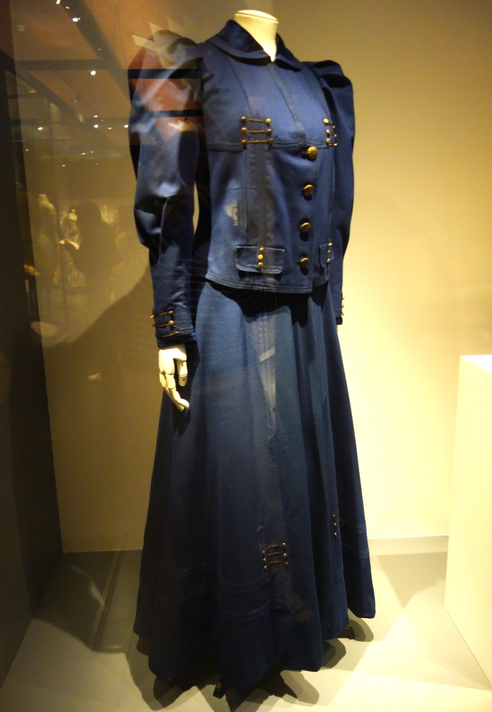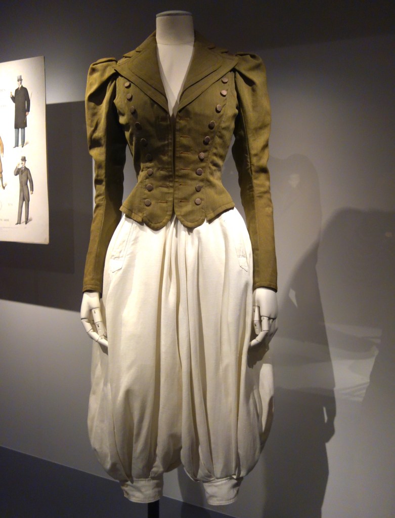 Le riche dialogue de l’exposition questionne également la notion de spécialisation du vêtement sportif et d’adaptation, en particulier à la fin du 19e siècle tel que les tenues féminines pour la pratique du sport comme la bicyclette.