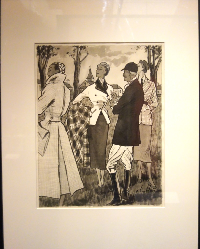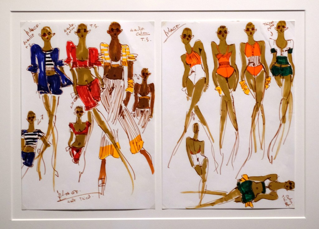 C’est ainsi que trois siècles de mode et de vêtements destinés à la pratique sportive telle que l’équitation, la natation, le tennis, le ski, le golf, la bicyclette nous est racontée.