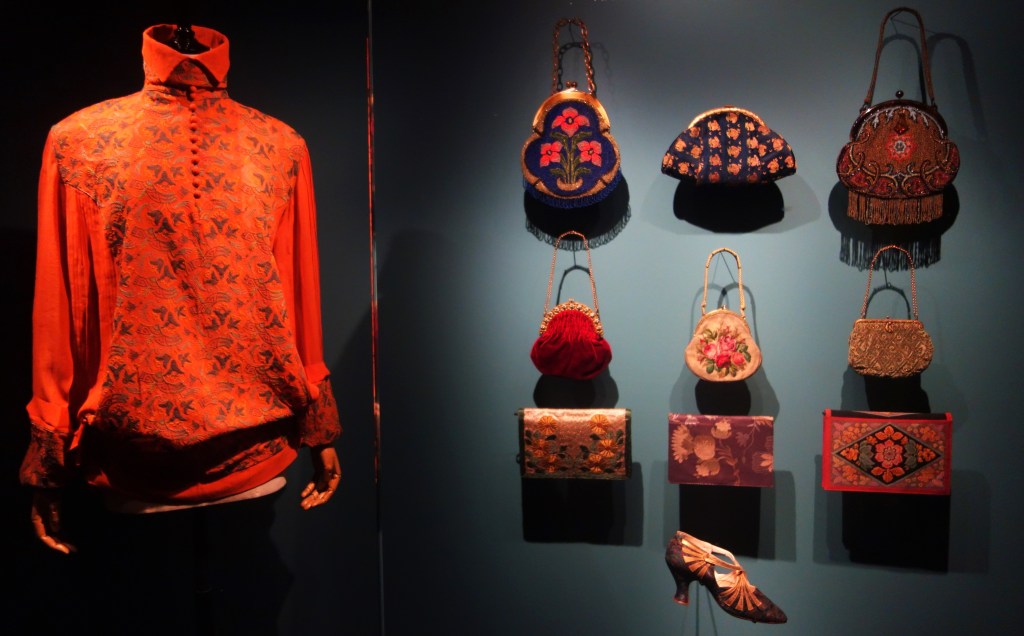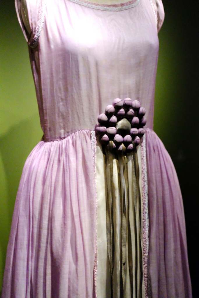 À partir de l’été 1921 et ce, jusqu’à l’été 1923, on retrouve sur les robes et accessoires féminins plusieurs déclinaisons de mauve comme le parme, la lavande, le lilas et le cyclamen. Cette section de l’exposition est d’ailleurs tout en douceur et en féminité.