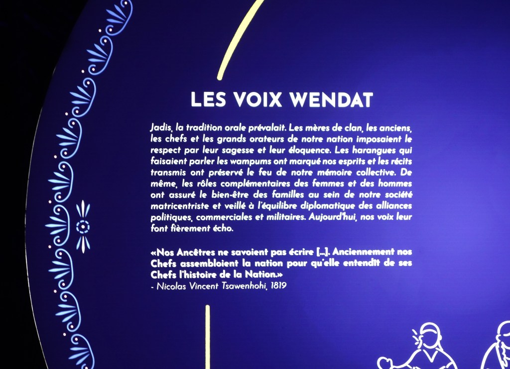 Tout au long de ce parcours, la langue Wendat prend graduellement vie pendant que des histoires se racontent et que les chants accompagnent chacun de nos pas.