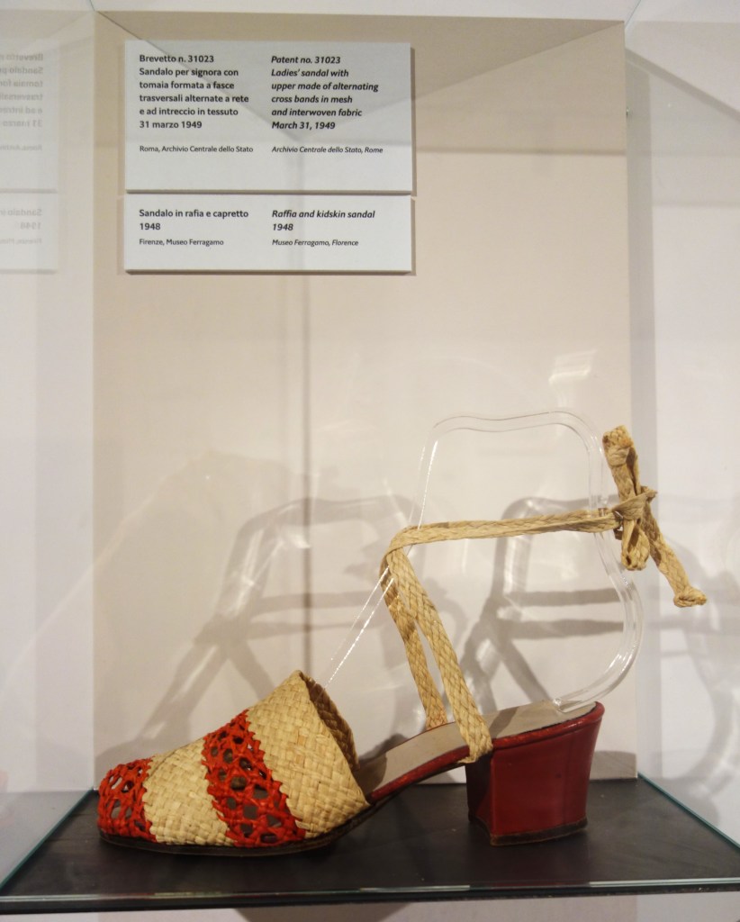 Une des sources d’inspiration d’un créateur de mode est le tissu et pour ce qui est d’un designer de chaussures, le matériau utilisé est bien souvent le cuir. Or, Salvatore Ferragamo aimait explorer différentes avenues et en l’occurrence diverses matières premières, bien souvent inhabituelles comme de la peau de poisson, le gros grain, le raphia ou bien la cellophane qu’il manipulait avec ingéniosité. Et, j’ai adoré visiter cette section du musée !