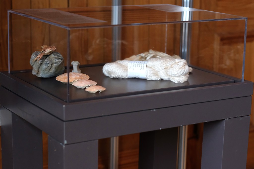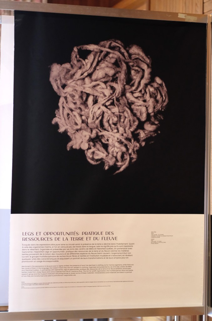 Organisée et présentée par Les Amis des Jardins de Métis ainsi que par Fibershed Québec, en collaboration avec Exploramer, cette belle exposition permet de valoriser les matières textiles provenant de la laine des moutons et des différents organismes vivants dans le majestueux Fleuve Saint-Laurent.