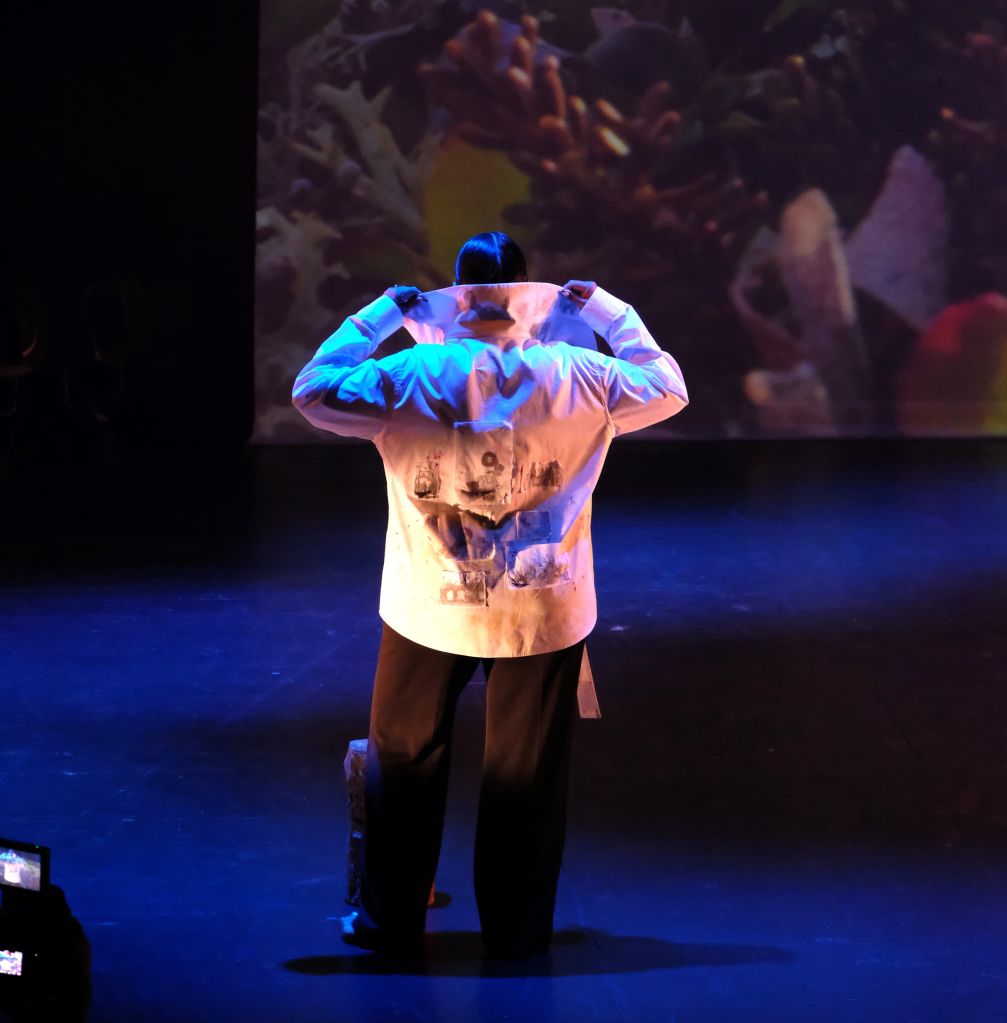 Ce défilé-performance nous a épatés dès le commencement par la présentation du personnage de Jean-Claude Poitras à ses tout débuts réfléchissant et se demandant quel était le sens de son travail. Et, j’ai été touché par cette scène, car ayant lu son intéressante biographie, je pouvais m’imaginer ce sentiment.