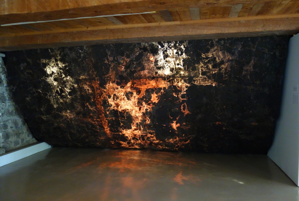 Ce que j’ai aimé de cette œuvre forte est ses textures, le traitement de la matière utilisée, les couleurs terreuses, le contraste entre l’ombre et la lumière. En résumé, cette masse, ce bloc bien visible qui procure un wow saisissant !