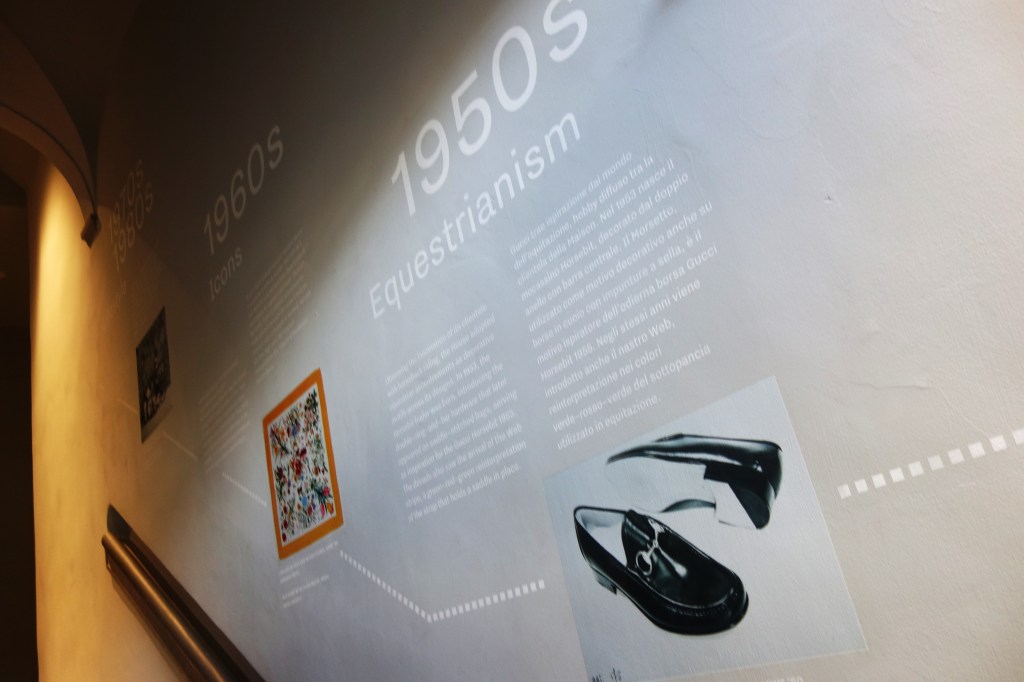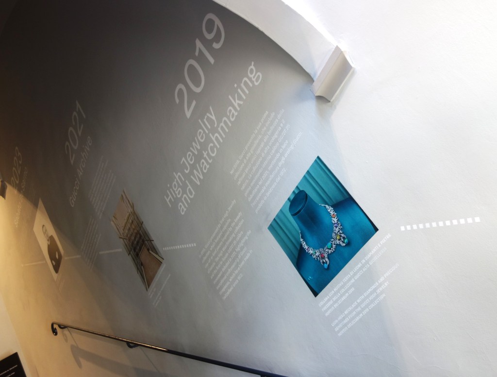 La visite du Gucci Garden, qui éveille définitivement les sens, se poursuit en découvrant le thème EPHEMERA où un environnement sonore et visuel plonge notre regard du présent vers cette vision de paysages, d’objets, de vidéos et de nombreux souvenirs retraçant l’histoire de la marque.