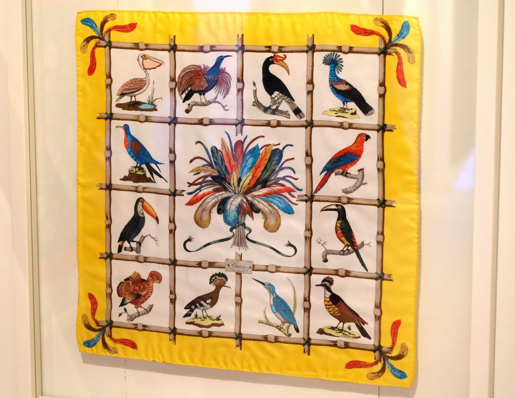 C’est en l’honneur de Grace Kelly, princesse consort de Monaco, que ce foulard a été créé. Rodolfo Gucci, l’un des quatre fils du fondateur de la Maison de couture, voulait offrir à la princesse, pour son dixième anniversaire de mariage, un cadeau très spécial et pour l’occasion, il a demandé à l’artiste bien connu de l’époque Vittorio Accornero de Testa de créer ce foulard en 1966.