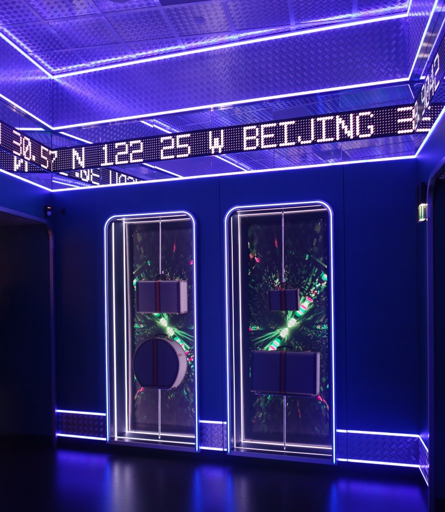 Cette salle interactive, qui est l’avant-dernière de l’exposition, nous permet de découvrir, par le biais de ses installations vidéo, les origines de la marque en tant que fabricant de maroquinerie et démontre bien son éthique cosmopolite.