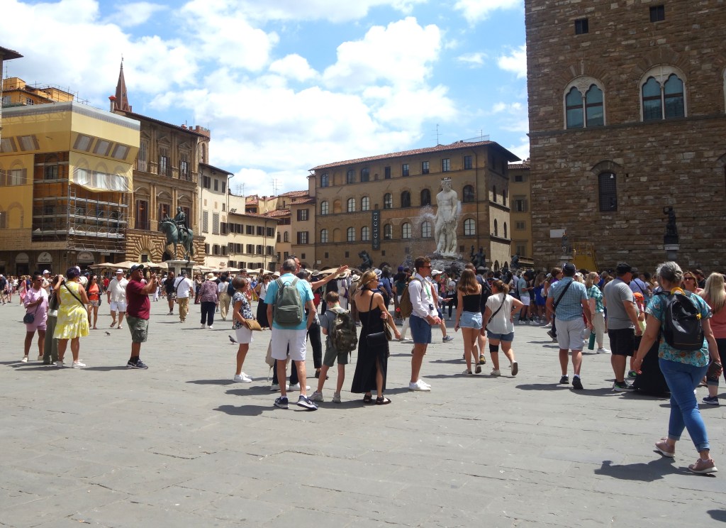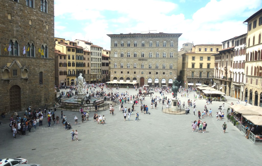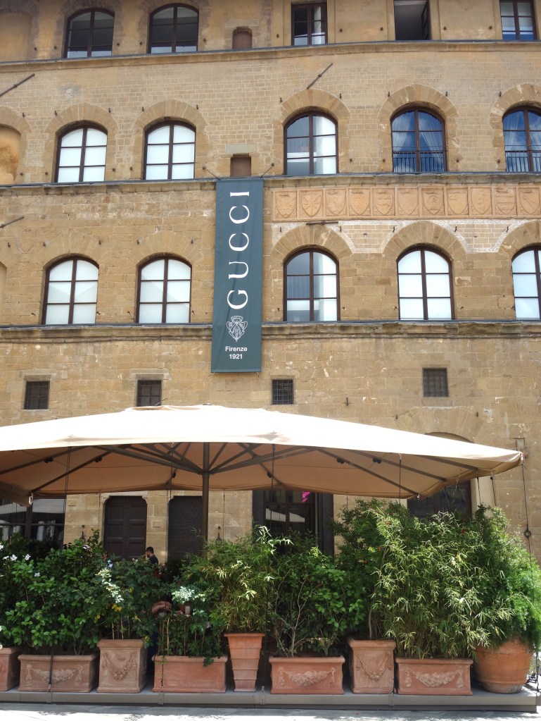 Vue du Gucci Garden tout au font de la Piazza della Signoria