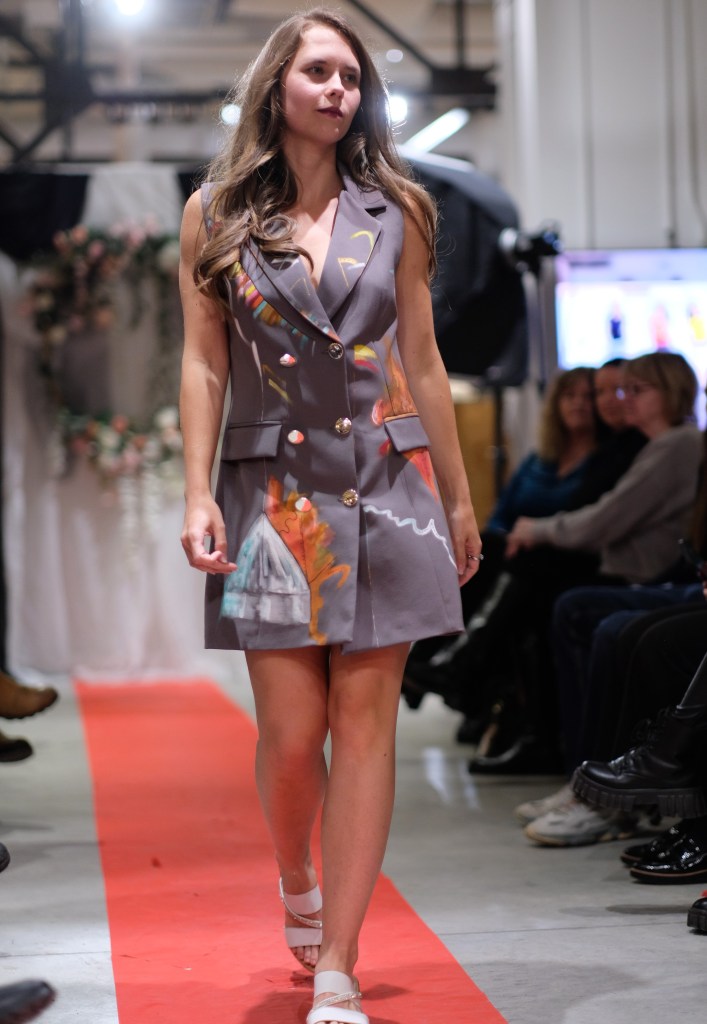 Lors de cette grande soirée mode, Kathy Lefrançois, artiste passionnée et créatrice de Lefrançois Créations, a présenté à son tour une jolie collection éco-responsable insufflant élégance durabilité et intemporalité dans chaque pièce qui la compose. Et, j’ai bien aimé, bravo !