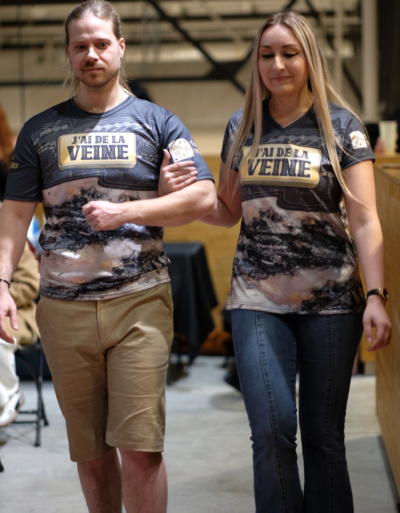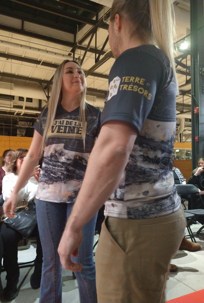 Lors de cette grande soirée mode, Anne-Sophie qui est géologue de formation a présenté sa collection de T-shirts unisexe nommés « J’ai de la veine », jeu de mot avec veine qui correspond à une formation géologique.